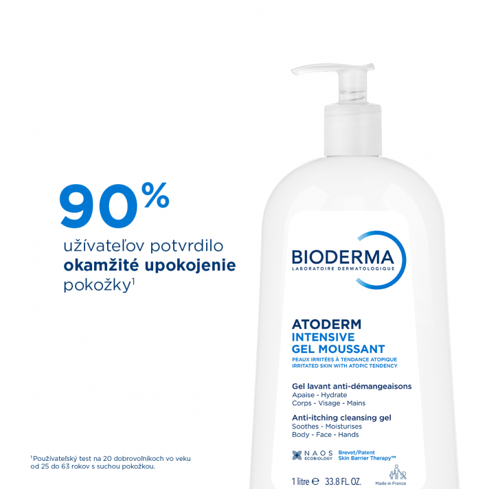 Vďaka čistiacim látkam a vitamínu PP Atoderm Intensive Gel moussant bojuje proti množeniu mikroorganizmov a prieniku iritant, ktoré zhoršujú suchosť pokožky.