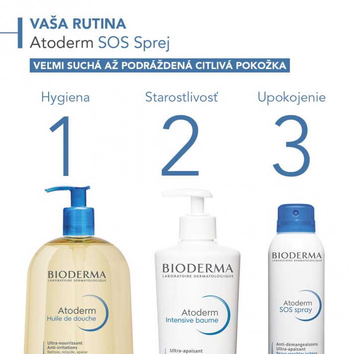 Atoderm SOS Sprej čerpá z nového vedeckého objavu: 2 nové biologické ciele boli definované ako príčina svrbenia u pokožky náchylnej na atopiu alebo psoriázu. Táto starostlivosť tiež pôsobí na iné biologické mechanizmy, ktoré vedú k častému alebo dočasnému svrbeniu.