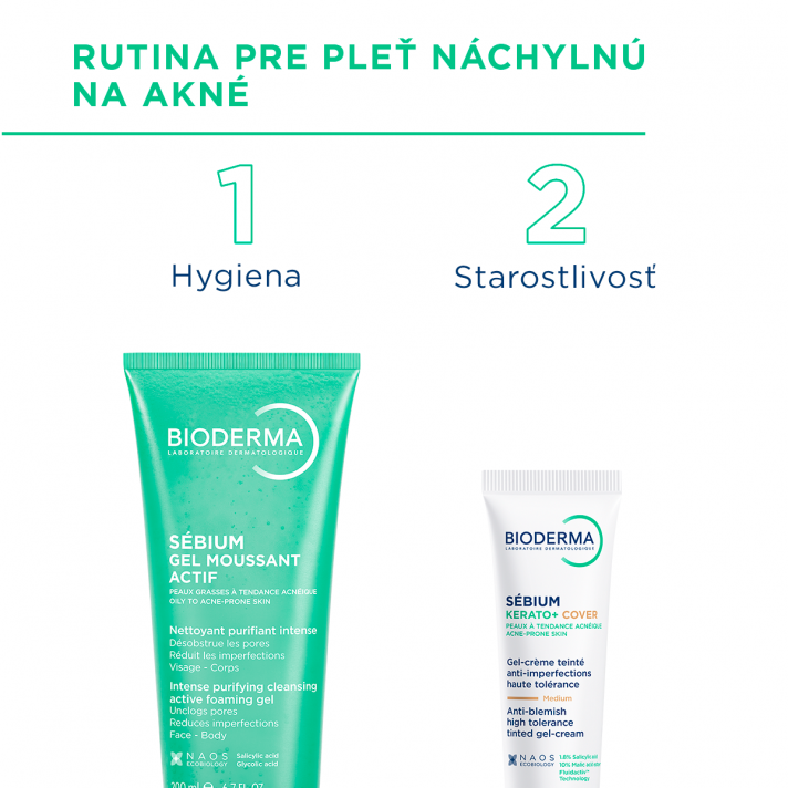 Exkluzívne duo keratolyticky aktívnych látok (kyselina salicylová a ester kyseliny jablčnej), účinné pri pH pokožky, pôsobí na povrchu aj pod ním a odstraňuje pupienky, začervenanie a jazvy po akné, pričom zachováva komfort pokožky.
