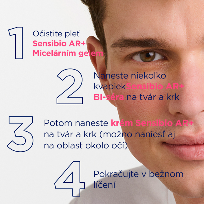Sensibio AR+ Krém je špeciálne vyvinutý pre reaktívnu citlivú pleť, aby pomáhal zmierňovať príčiny a následky rosacey. NOVÁ PATENTOVANÁ* Technológia ROSACTIV™ 2.0 pôsobí priamo pri zdroji biologických mechanizmov, ktoré sa podieľajú na vzniku rôznych typov začervenania a nepríjemných pocitov. Viditeľne a dlhodobo ich redukuje vďaka: