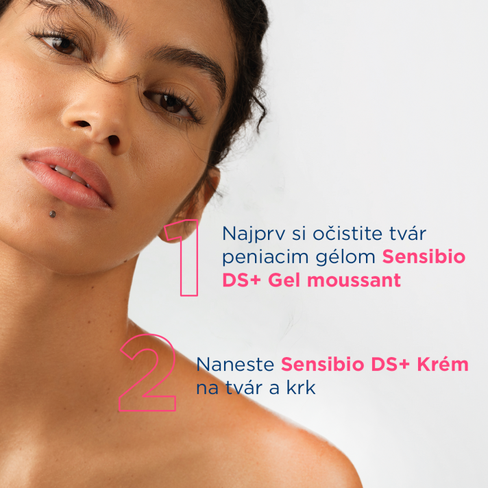Upokojujúce a zmierňujúce zložky – enoxolon a kokosový olej – v prípravku Sensibio DS+ Krém upokojujú podráždenú pokožku, minimalizujú začervenanie a viditeľne znižujú tvorbu šupiniek.